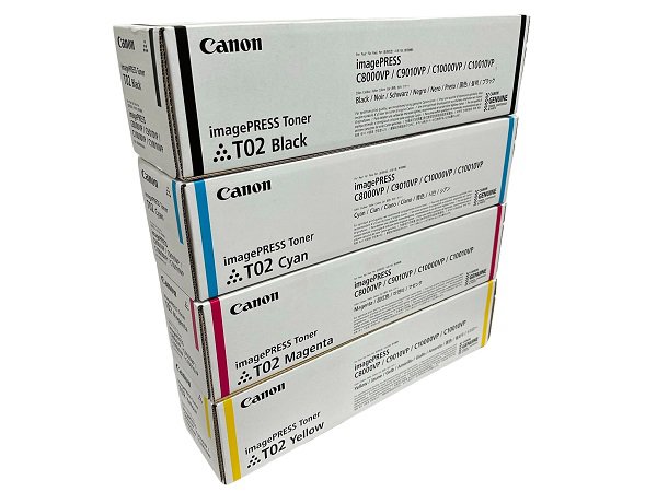 Genuine Canon | High-Definition CV Toner | Production-Grade 4-Pack Solution Maintain the elite color standards of your high-volume production engine with the genuine Canon T02 complete toner set. This authentic OEM bundle includes all four essential cartridges (T02 Black, Cyan, Magenta, and Yellow) specifically engineered for the Canon imagePRESS C8000VP, C9010VP, C10000VP, and C10010VP flagship series. Featuring Canon’s advanced Consistently Vivid (CV) Toner technology, these cartridges provide a wide color gamut and a smooth, offset-like finish across a vast array of textured and coated media. This production-ready 4-pack is designed for maximum uptime and efficiency in the most demanding commercial print environments. By choosing genuine Canon T02 supplies, you ensure 100% compatibility with your press’s sophisticated color management systems, protecting your developer units and ensuring repeatable, professional results on every run.| Specifications | |