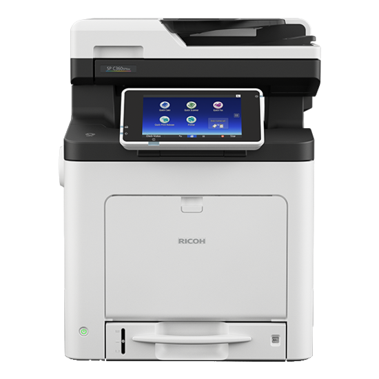 The Ricoh SP C361SFNw is a versatile, feature-rich color multifunction printer that brings high-quality output and convenience to your workplace. Offering reliable performance for printing, scanning, copying, and faxing, this machine is designed to meet the needs of modern businesses. Its wireless connectivity and mobile printing capabilities make it a smart choice for businesses looking to streamline their workflow.